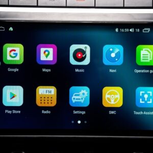 A capacitive touch screen system with all basic functionalities like USB Bluetooth FM Wi-Fi connectivity Play Store Access Video in Motion Wireless phone mirroring etc. Now download all applications on the go and browse them in full HD clarity and enjoy your drive. Also you can mirror your phones display to the system and watch it on the go.